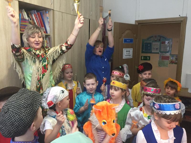 дети читали колядки и играли в ложки и трещетки. А потом их ждал чай из