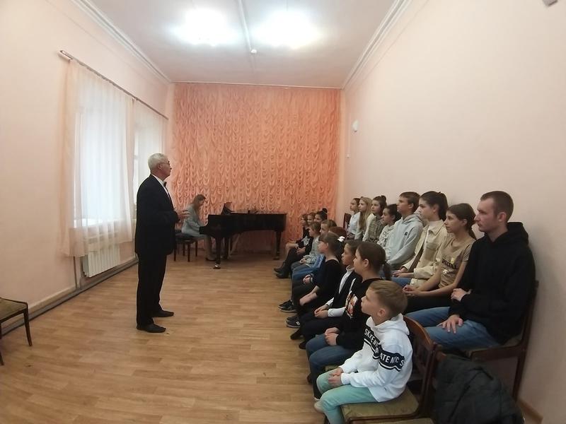 Музыкант, артист, педагог, солист муниципального академического хора «Многолетие» и руководитель камерного хора Октябрьска, Петр Саломатин встретился с учениками и преподавателями Детской школы искусств №1. На встречу пришли дети, занимающиеся хоровым пением. Петр Иванович рассказал об особенностях работы с классикой, современной популярной детской музыкой и с песнями современных композиторов. Ребята узнали, как гость прошел путь от студента Талдыкурганской консерватории в республике Казахстан до артиста и руководителя камерного хора.