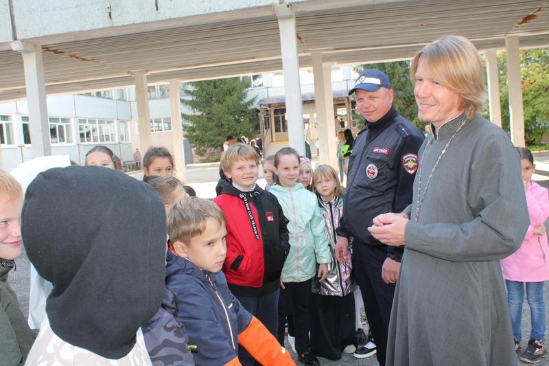 Известный в Сызрани священник, руководитель молодежного отдела городской епархии и член Общественного совета при сызранской полиции, протоиерей Александр Устинов проводил для школьников уроки безопасности. Уроки были организованы в рамках осенней акции «Внимание - дети! Дорога в школу!» Отец Александр пришел к ученикам начальных классов школ №10 и 33, что в Юго-Западном районе. Гости напомнили ребятам подзабытые за каникулы Правила дорожного движения: как вести себя на дороге, в автобусе, в салоне автомобиля. Школьники вспомнили о сигналах светофора, об основных правилах безопасности при управлении велосипедом и другими средствами передвижения. Особенно детям понравилось, что можно было посмотреть настоящий патрульный автомобиль и послушать, как кричит на весь школьный двор специальное голосовое устройство.