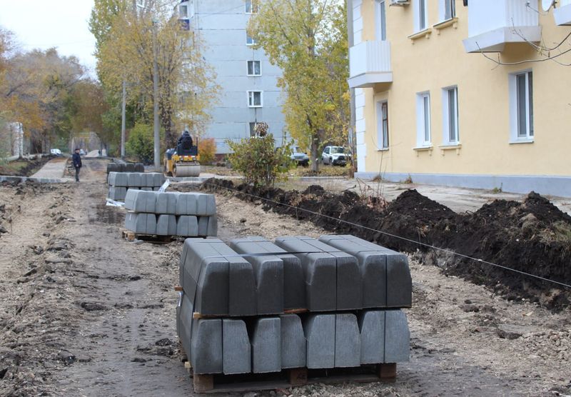 Подрядчик и в дождь не перестает работать на ремонте дворов в Сызрани.
