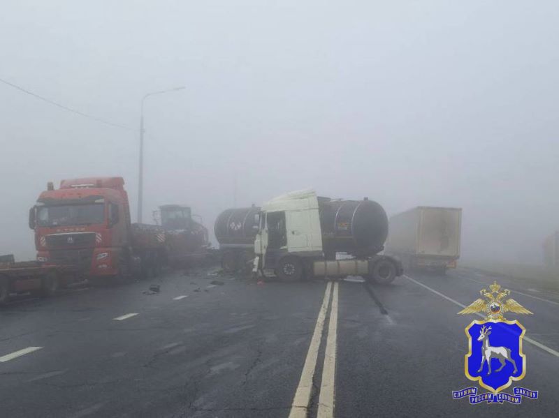 Сотрудники Госавтоинспекции работали на месте ДТП в Сызранском районе. По предварительным данным, собранным сотрудниками Госавтоинспекции следует, что 29 октября, примерно в 08:50, 57-летний водитель автомобиля DAF, в составе полуприцепа, двигался по автодороге М-5 «Урал» со стороны г. Москва в направлении г. Самара. На 912 км, что находится в Сызранском районе, был совершен наезд на стоящий автомобиль SITRAK, в составе полуприцепа, под управлением 40-летнего водителя. На месте происшествия телесные повреждения получил водитель автомобиля DAF. Сотрудники полиции продолжают выяснять все обстоятельства произошедшего.