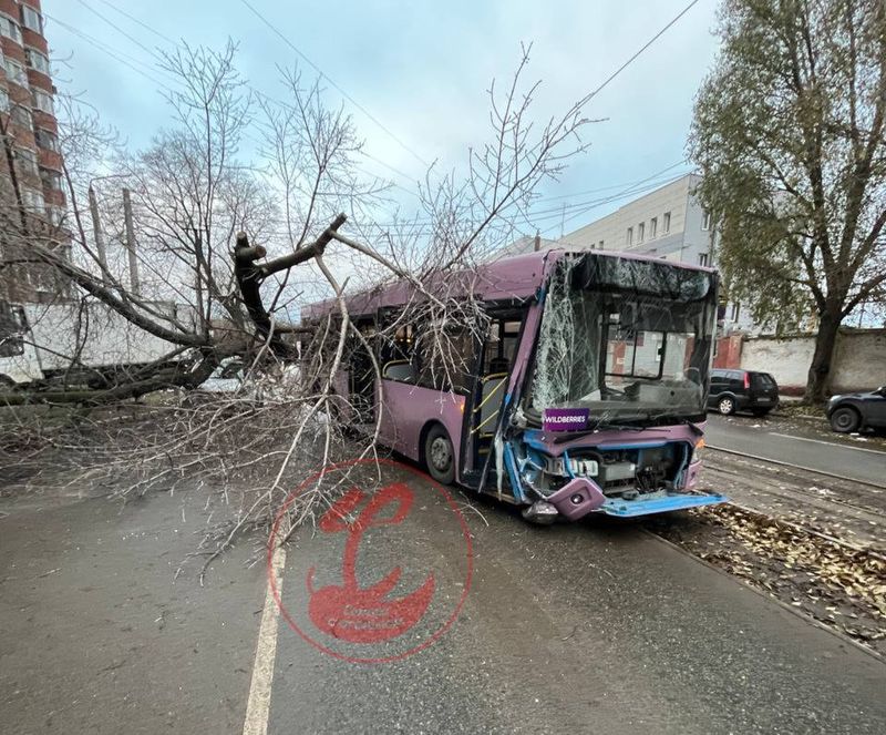 В Самарской области водитель автобуса вел себя как слон в посудной лавке и «уронил» на автомобиль дерево