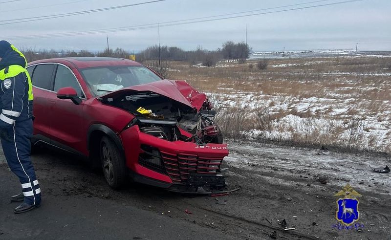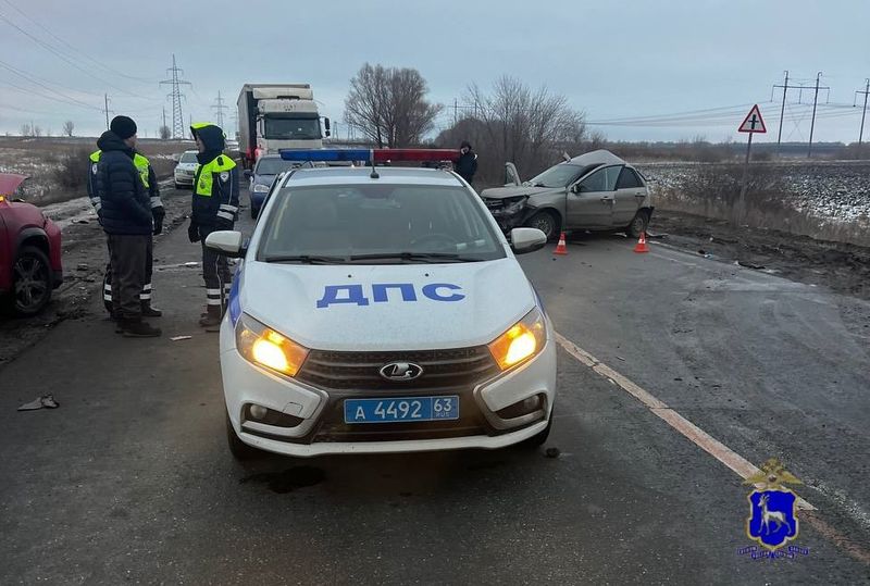 Полицейские из подбитой в ДТП машины бросились помогать раненым. Сегодня утром в Самарской области произошло смертельное ДТП - погибла женщина. По данным областного главка полиции, в 07:15 на 39 км автодороги «Самара - Пугачёв - Энгельс - Волгоград» столкнулись пять автомобилей. По предварительным данным сотрудников Госавтоинспекции, 40-летний водитель автомобиля Jetour не учёл погодные и дорожные условия, не выбрал безопасную скорость и дистанцию и допустил столкновение с автомобилем Lada Granta, который остановился на запрещающий знак светофора. В салоне Granta была пассажирка.